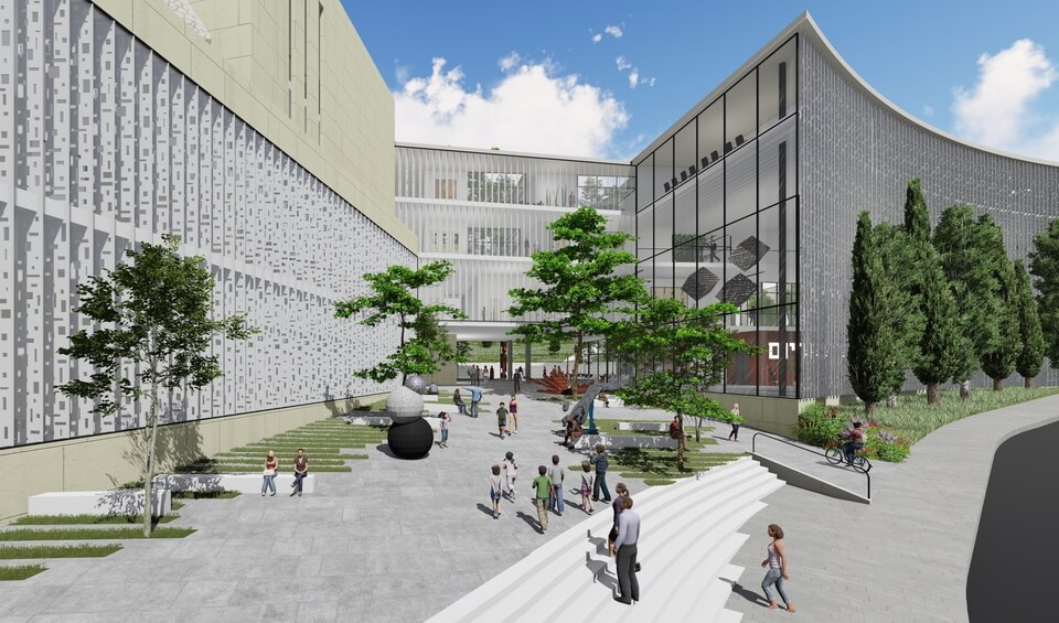 Open competition entry for a new building comprising a lobby, museum, researchers’ rooms, library, auditorium, plenary hall and more. The design integrates courtyards and an amphitheater.